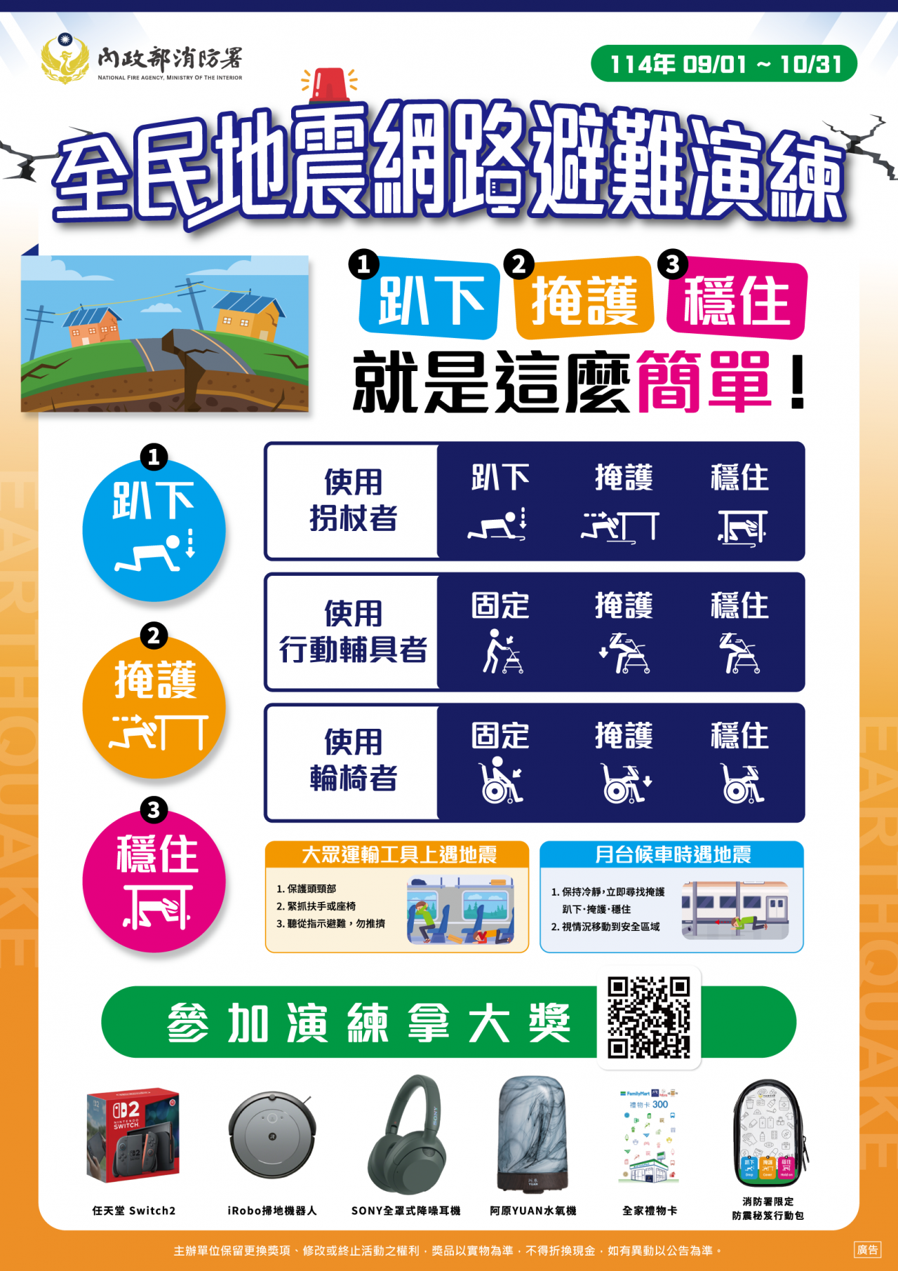 | 1、 | 全民地震網路避難動作演練抽獎活動。 |