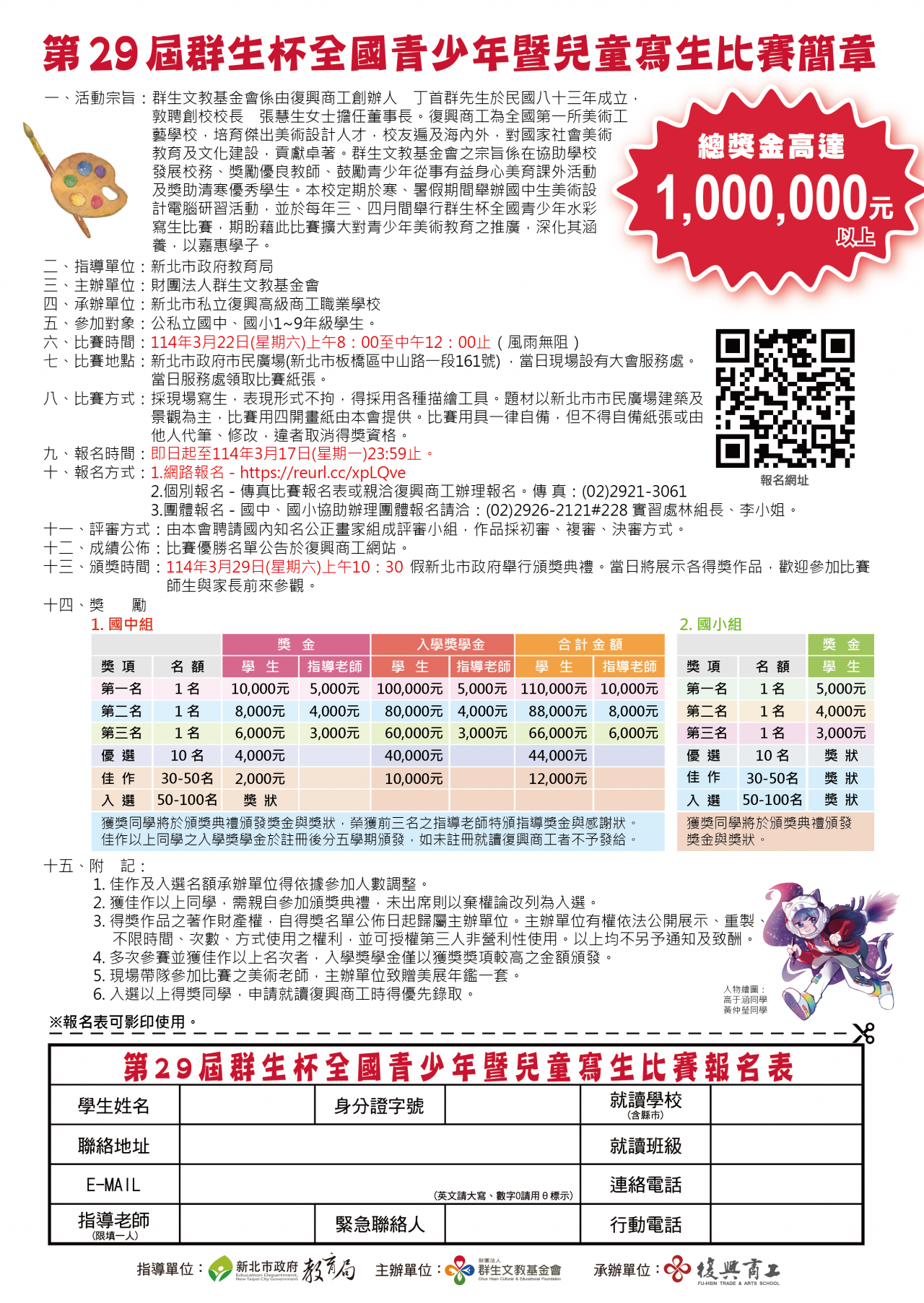 「第 29 屆群生杯全國青少年暨兒童寫生比賽」簡章