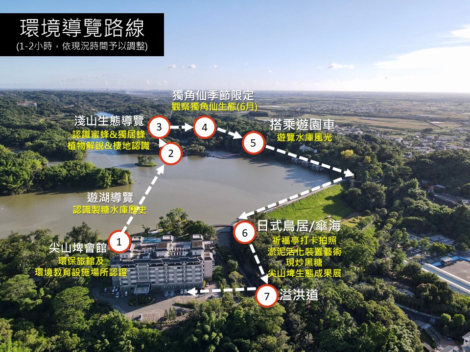 三、目前柳營尖山埤渡假村開設之環境教育認證課程方案(詳附件1),涵蓋糖業文化與淺山生態等主題,並另有結合實作體驗之生態職人課程(詳附件2),課程內容融入實際棲地營造,致力於將環境教育落實於日常生活。亦可依團體需求客製化課程內容,規劃多項DIY手作體驗、遊湖船導覽、獨木舟訓練等活動,豐富參與者之學習與休閒體驗。