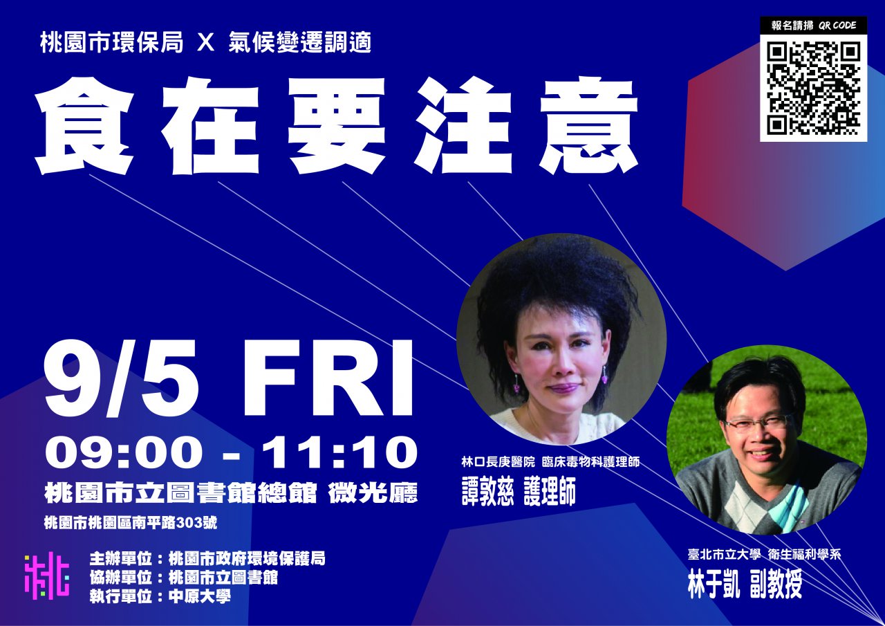 三、本次工作坊特別邀請氣候變遷研究學者-臺北市立大學林于凱教授以及無毒教母-林口長庚臨床毒物中心的譚敦慈護理師擔任講座,分享氣候變遷調適新知以及極端氣候下的家庭健康飲食,成就永續健康人生。