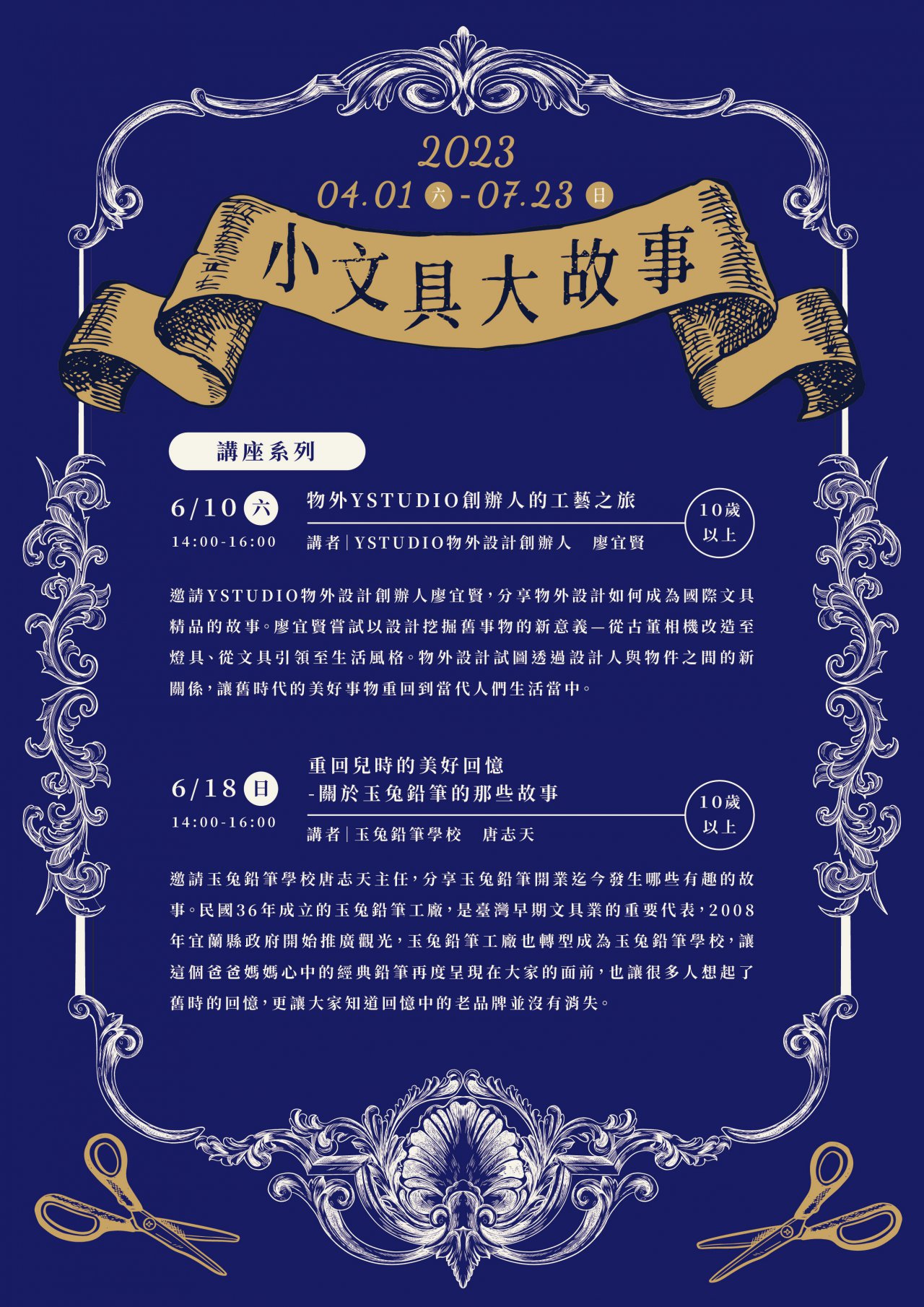 | 一、 | 旨揭活動以「文具」為主軸,邀請 2 位相關領域講者分享品牌從本土至國際精品背後的故事,以及台灣文具產業的變化和傳承。 |
