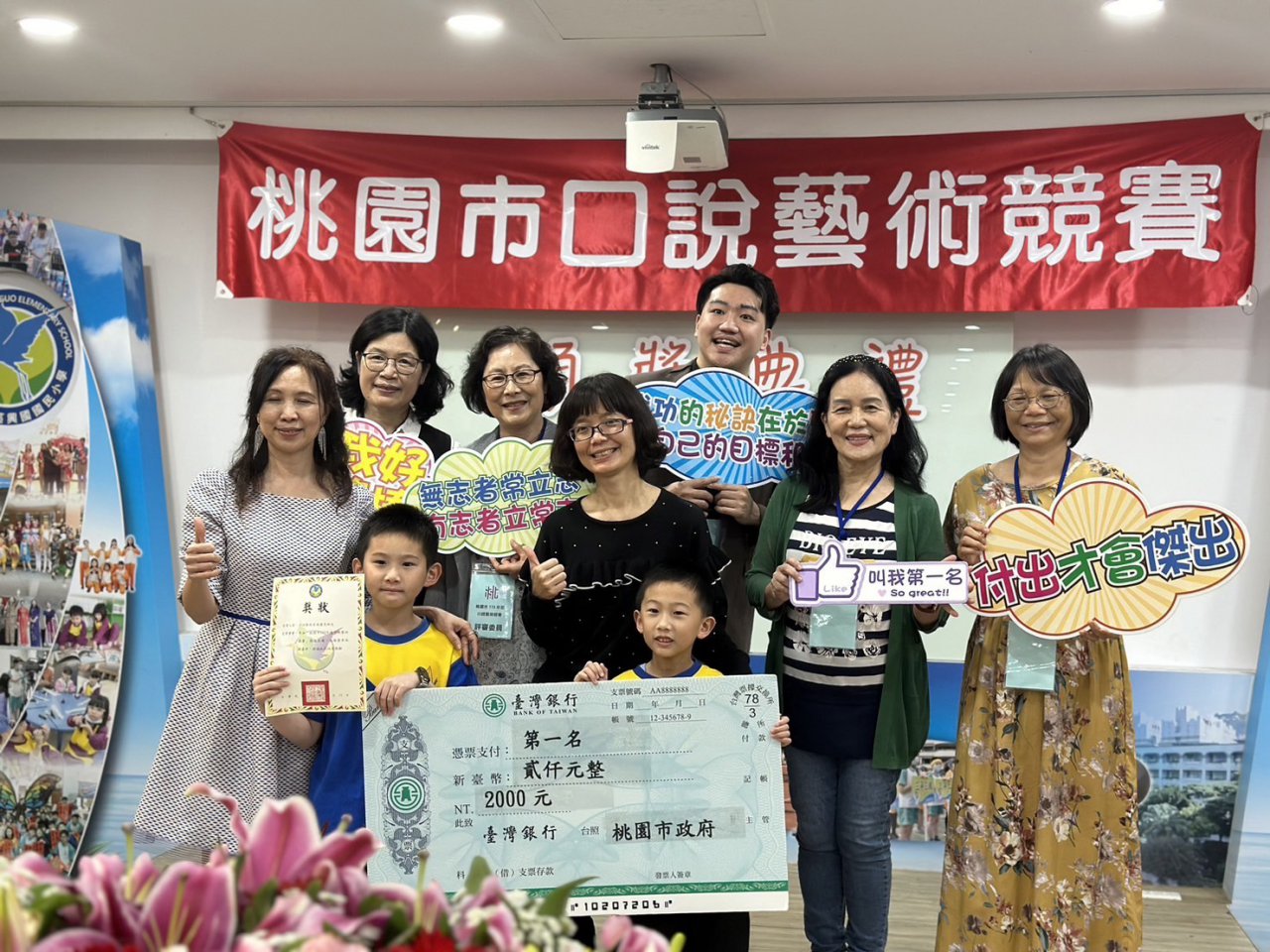 賀!本校學生參加桃園市 113 年度口說藝術競賽國小組表現優異 榮獲第一名及最佳台風獎 。