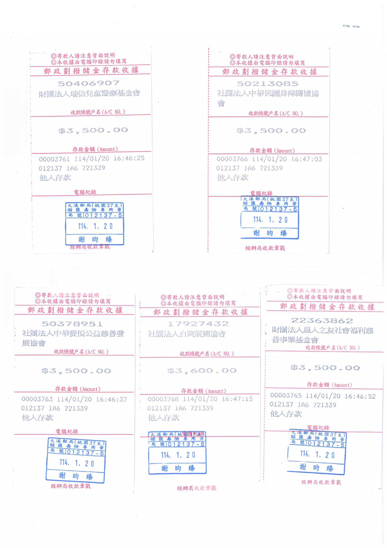 感謝大家贊助12/25Xmas聖誕義賣,而義賣所得NT17600已於日前以劃撥方式全部捐贈中華郵政公益網所列公益團體
