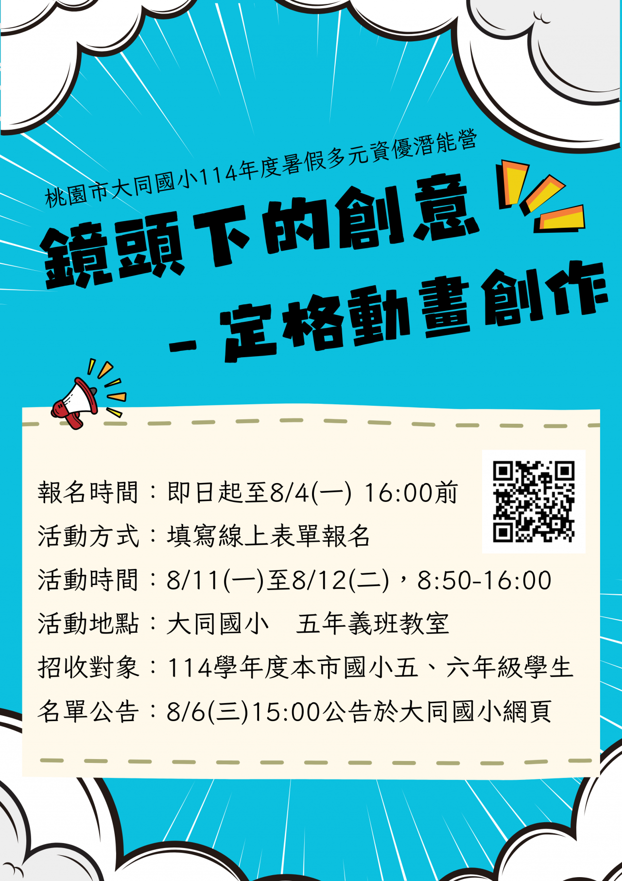 2.錄取名單將於 114/8/6(三)15:00 公告於大同國小網頁,敬請留意錄取後注意事項。